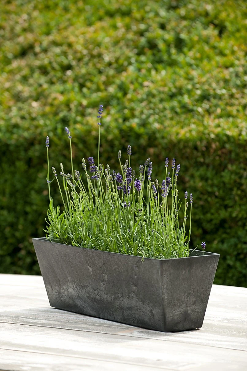 Plantenbak Ella is met zijn robuuste marmeren uiterlijk een aanwinst voor elke tuin en elke woonkamer. De zwarte rechthoekige plantenbak (55 x 17 x 17 cm) van Artstone is vervaardigd uit een lichtgewicht kunststof-steenmix, waardoor hij gemakkelijk te verplaatsen is. Dat maakt hem uitermate geschikt om je balkon om te toveren tot een oase met een stoer accent. Het drainagesysteem van de plantenbak voorkomt planten met natte voeten en is een uitkomst voor de minder groene vingers onder ons. De plantenbakken van Artstone zijn recyclebaar.