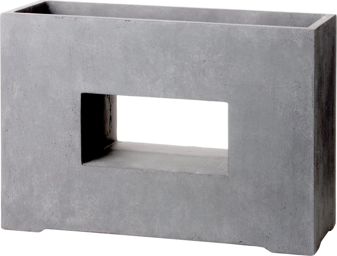 Deze prachtige natuurlijke plantenbakken zijn gemaakt van clayfibre. Clayfibre is een combinatie van polyester en gemalen steen. Het voordeel hiervan is dat ze de uitstraling van steen hebben, maar lichtgewicht zijn en dus makkelijk te verplaatsen. De bloem- en plantenbakken zijn regen-, vorst- en kleurbestendig. Aan de onderkant van de bak zitten gaten voor een goede afwatering. Tip: gebruik deze kubus plantenbak als Terrasafscheiding. De kleur is lichtgrijs. Afmeting: 75 x 27 x 52 cm.