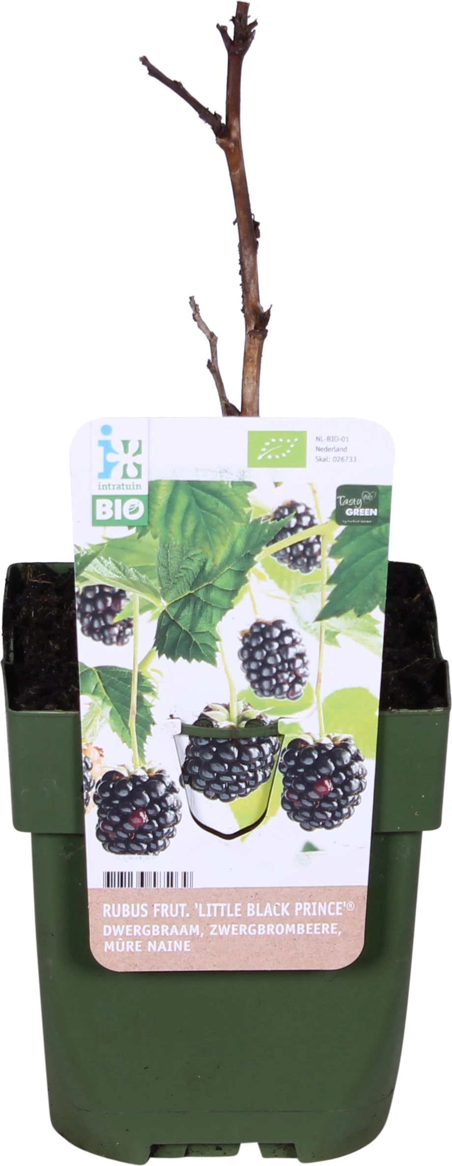 Een braam staat bekend om zijn grote doornen en de donkerpaarse/ zwarte bessen met kleine haartjes. Maar de braam is tegenwoordig veel meer. Zo zijn er soorten die klein blijven, geen doornen hebben en ook andere kleuren hebben. Deze braam heeft doornen maar blijft klein van stuk. Het soort heeft zwarte vruchten.