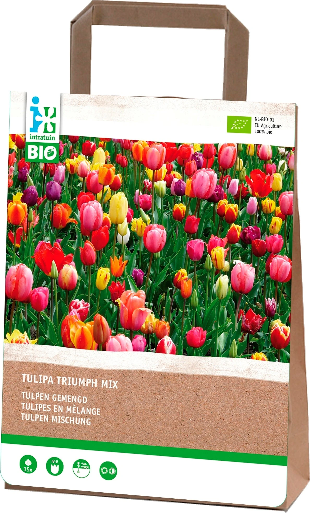 Deze prachtige tulpen kun je in het najaar in de tuin planten, waardoor ze in het voorjaar veel kleur geven. Ook in bloempotten zijn de tulpen een echte aanwinst. Ze zijn geschikt als snijbloemen en ideaal voor een zelfgemaakt bloemstuk, vanwege de stevige stelen. De bekende en betrouwbare selectie ‘Triumph’ is grootbloemig en is in vele kleuren gemengd bij elkaar. De bloei is in april-mei en de hoogte wordt dan 45-55 cm. Plant ze in groepen voor een mooi effect. Het is belangrijk dat de grond goed gedraineerd is, in zware klei kan wat grit en grof zand worden gemengd.