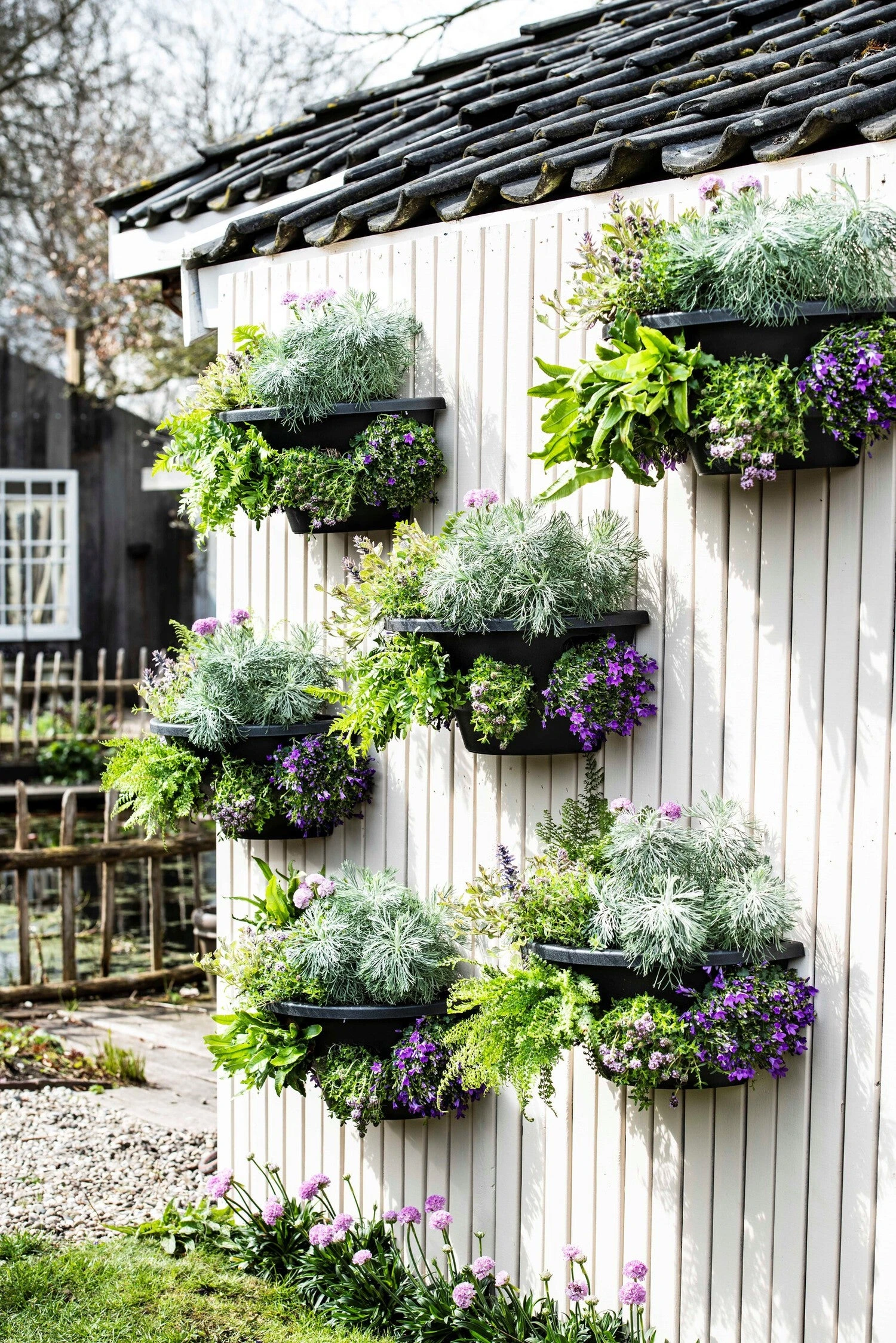 Deze muur bloempot van Intratuin is ontworpen om zijbeplanting mogelijk te maken. De roosterpanelen laten lucht door naar de wortels en verbeteren hierdoor de groeikwaliteit van de zijplanten. Hang hem op de gewenste plek, en vul hem met een mooie (hang)plant of bloemen. De hangplanten zullen sierlijk gaan hangen door de roosterpanelen heen. De roosterpanelen kun je ook uit de muur bloempot halen. De muur bloempot is gemaakt van kunststof. De afmetingen van deze bloempot zijn 36 x 20 x 30 cm.