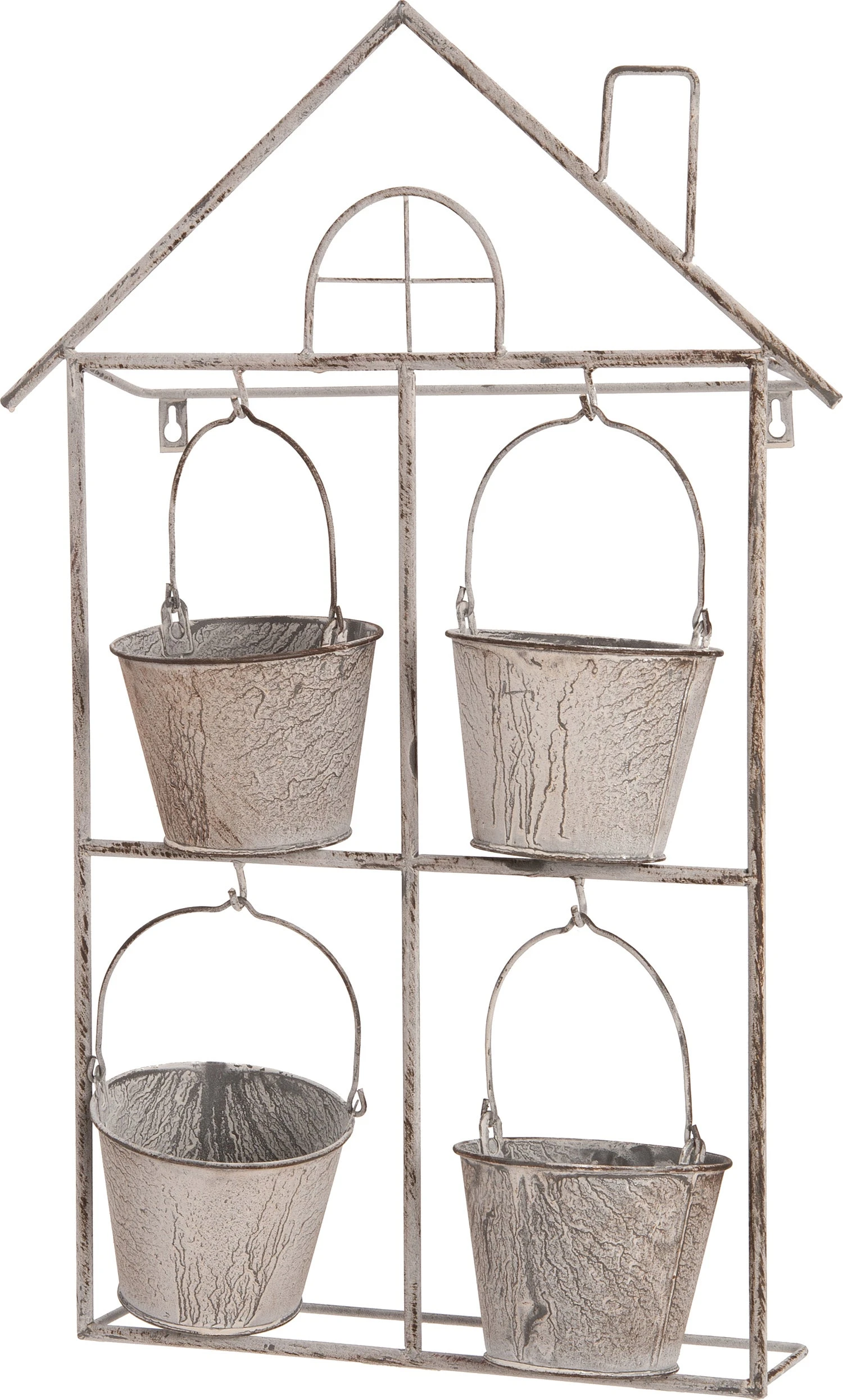 Deze bijzondere muur bloempot uit de collectie van Intratuin is een prachtige aanwinst voor in de tuin. De bloempot heeft namelijk niet alleen een prachtige cement grijze kleur, maar ook een fraaie vormgeving en is daardoor een echte blikvanger! Het huisje is voorzien van maar liefst 4 potten en heeft een ‘versleten’ afwerking. Zet het rek bijvoorbeeld tegen de schutting of je muur voor een sfeervol effect. De afmetingen van dit model zijn 42 x 8 x 62 cm.