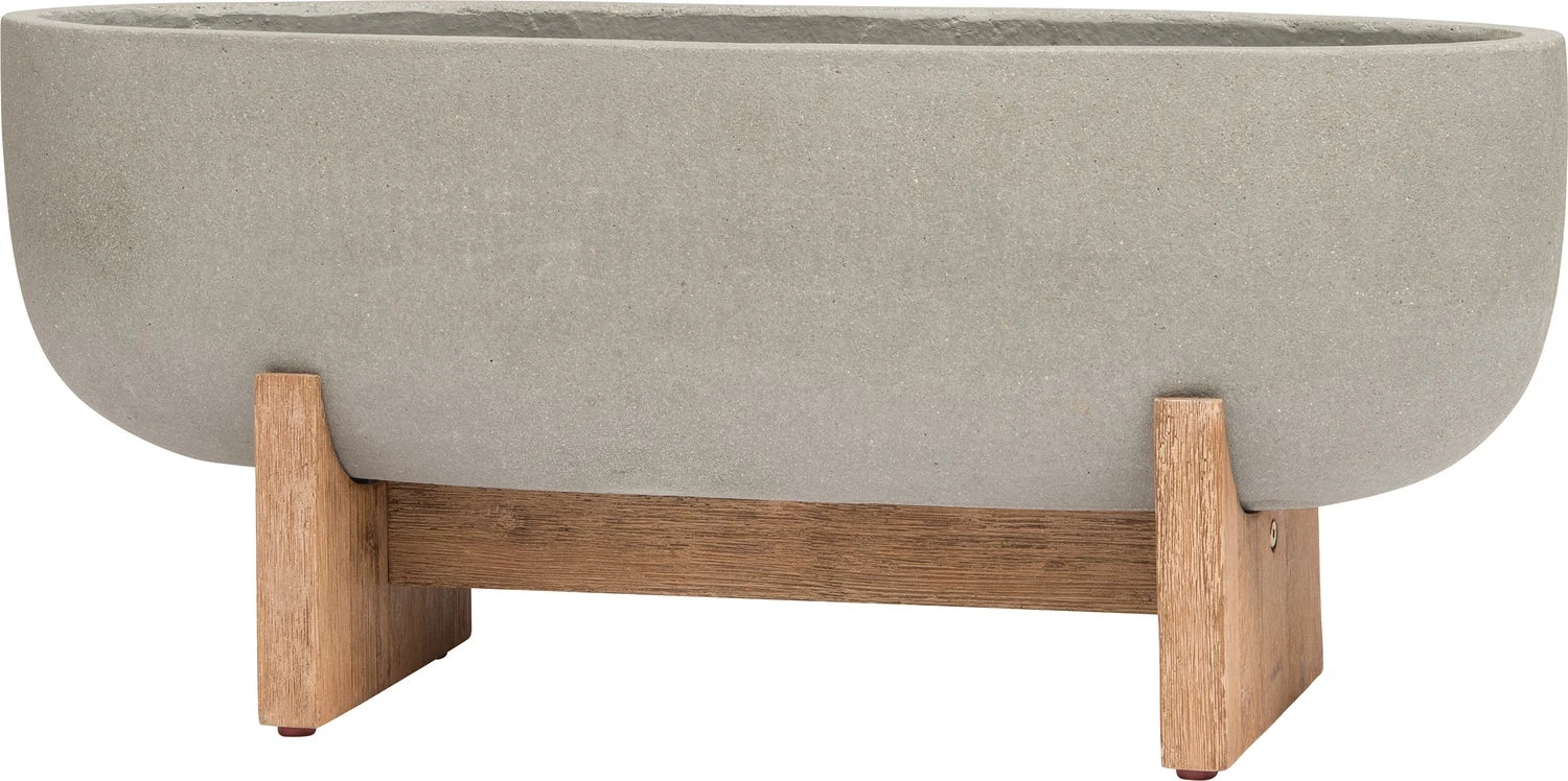 De ovale buitenbak staat op een stevig houten standaard. Speel met verschillende hoogtes en creëer een mooi geheel. Perfect voor bijvoorbeeld op je terras of balkon.